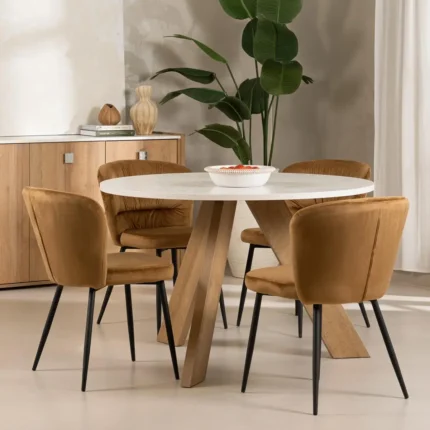 طاولة طعام مستديرة بيلا 4 مقاعد بيضاء