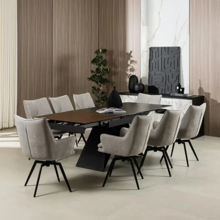 طاولة طعام ممتدة إيرين 8 مقاعد بني/أسود