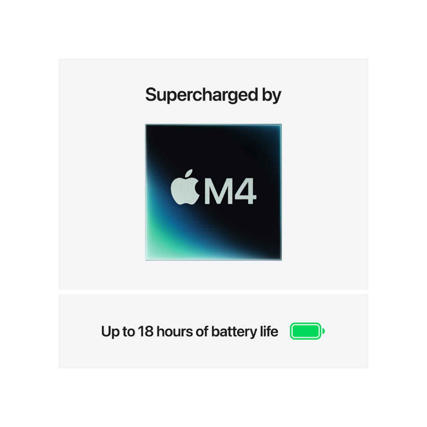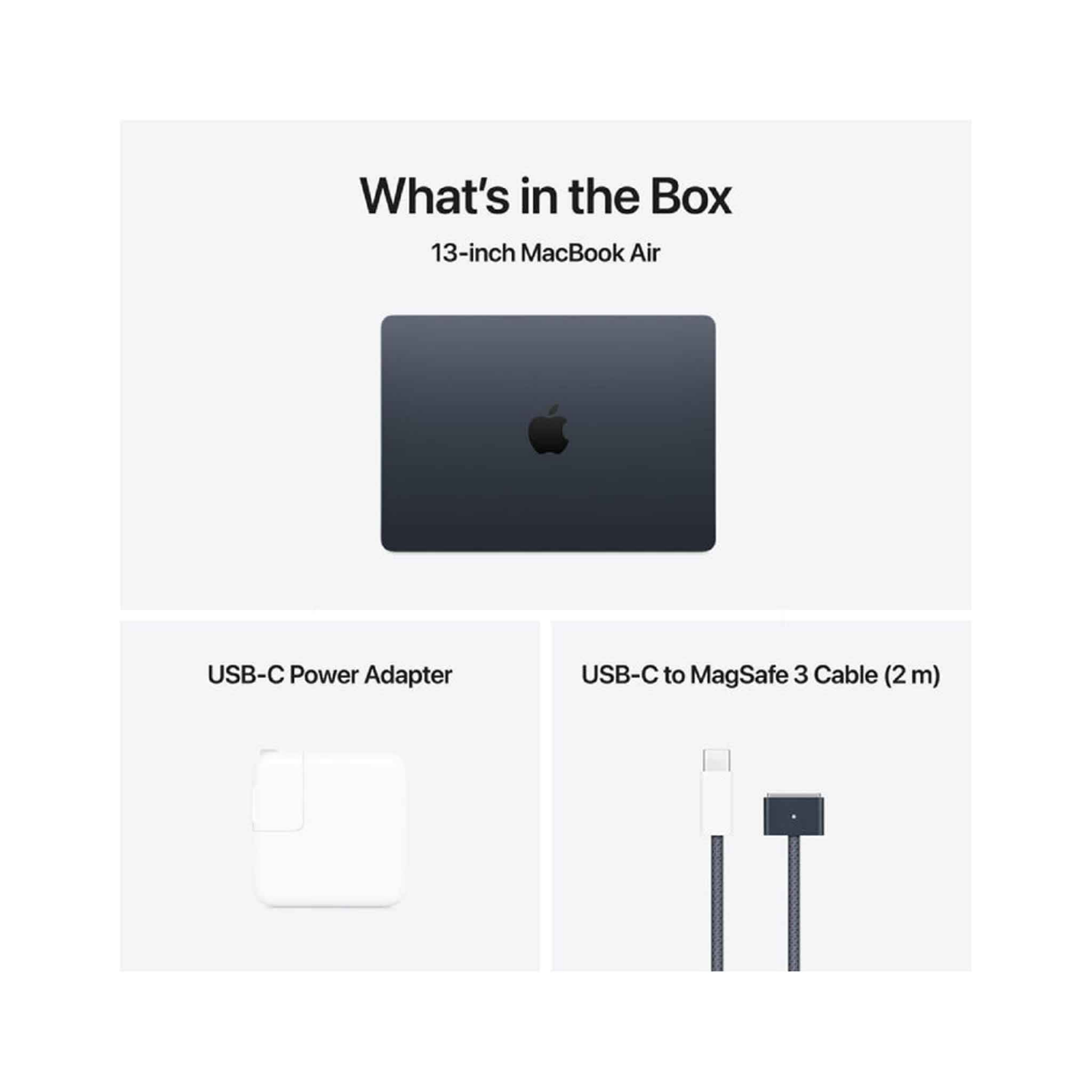 - في العلبة: ماك بوك إير 13 بوصة، محول طاقة USB-C بقوة 30 واط (M4 مع وحدة معالجة رسومات 8 نواة)، كابل USB-C إلى MagSafe 3 (2م)