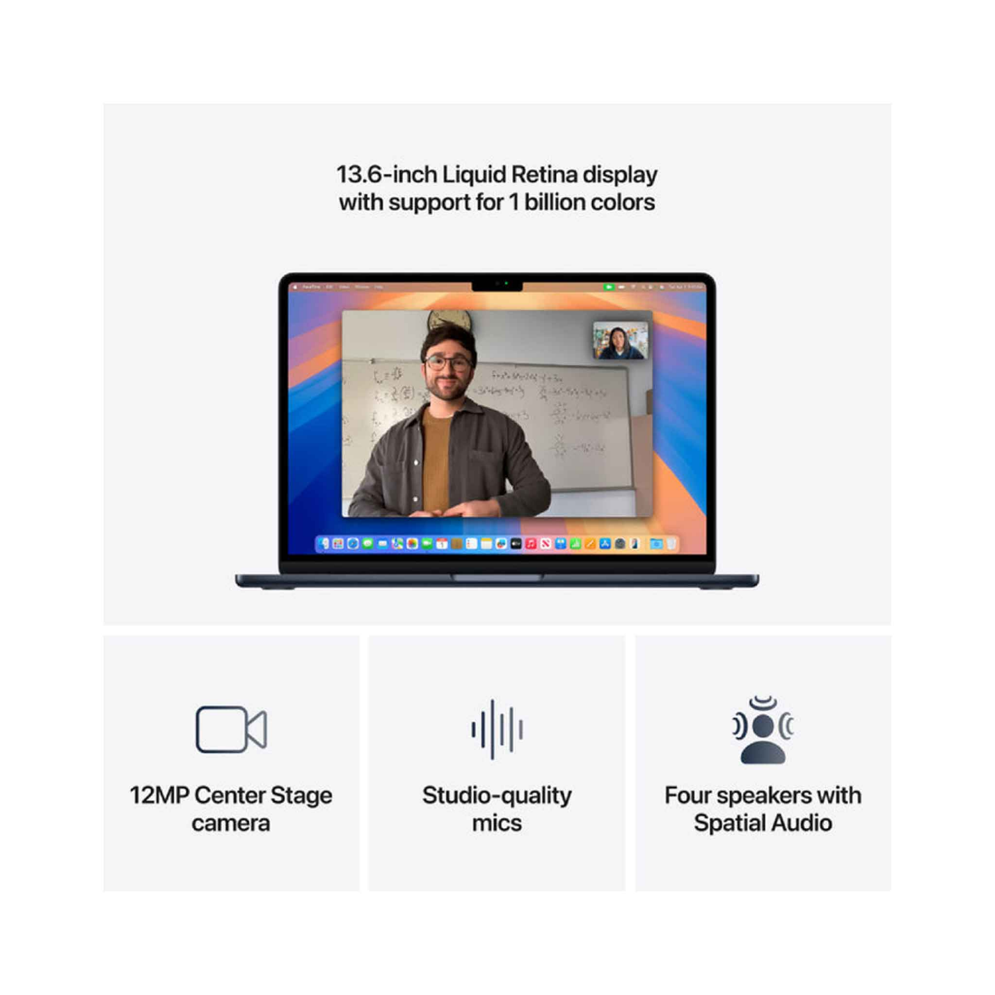 أبل ماك بوك إير ام4 – 13 بوصة – معالج 10 أنوية ووحدة معالجة رسومية 8 أنوية – 16 جيجابايت – 256 جيجابايت اس اس دي – ميد نايت