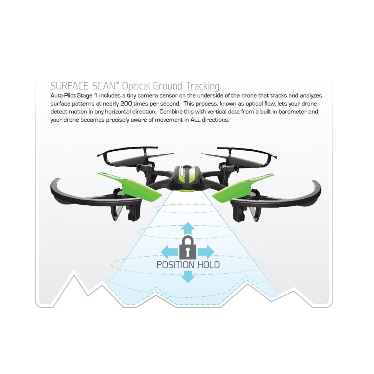 تعمل الطائرة بدون طيار Sky Viper FURY على تبسيط الطيران وتتفوق على الطائرات بدون طيار الأخرى في فئتها. تقدم Fury تقنية المسح السطحي، مما يجعل طيران الطائرات بدون طيار أسهل من أي وقت مضى. وهو يشتمل على مستشعر كاميرا صغير على الجانب السفلي من الطائرة بدون طيار يتتبع ويحلل أنماط السطح بمعدل 200 مرة تقريبًا في الثانية. فهي تمكنك من الطيران في أي اتجاه باستخدام عصا واحدة فقط بالإضافة إلى الحفاظ على التحليق بسهولة.