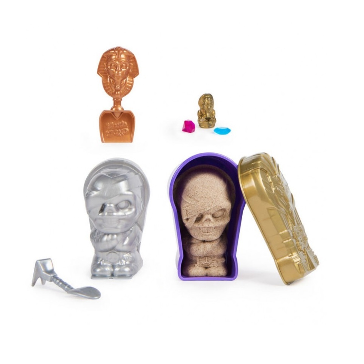 استخدم الفأس والمجرفة الخاصين بالمجموعة لفتح صندوق الغموض الخاص بك والحفر في الرمال الحركية للكشف عن الأدلة والكنوز! ثم اجمعوا للكشف عن المومياء!