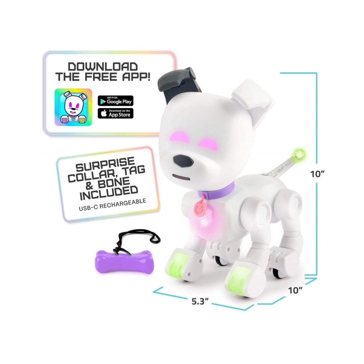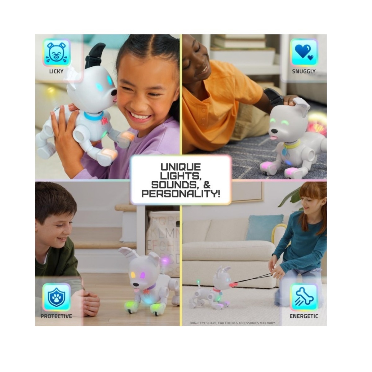 من خلال عملية سك العملة، يأتي Dog-E الأبيض بالكامل إلى الحياة ويكشف عن مزيج فريد من الأضواء الملونة والأصوات والسمات الشخصية، لذا فإن Dog-E الخاص بك هو حقًا واحد في المليون. لا يوجد اثنان من Dog-Es متماثلان على الإطلاق. اتصل بتطبيق Dog-E لمزيد من طرق اللعب.